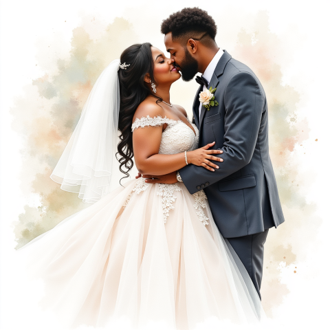 Free clipart illustration of black bride and groom kissing at their wedding (12)