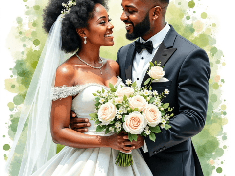 Free clipart illustration of a black couple gazing lovingly at each other on wedding day (5)