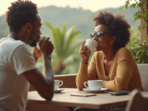 free clipart illustration of black couple enjoying tea outdoors (4)