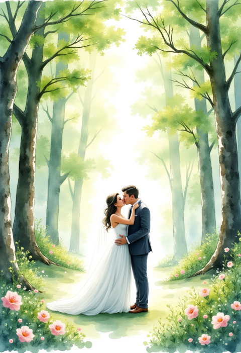Tagged aid, background, bride, clipart, couples, forest, free, groom, illustration, kissing