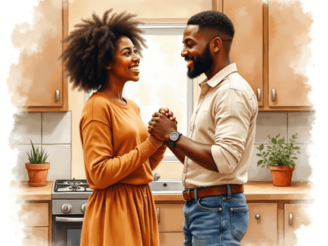 free clipart illustration of black couple gardening at home (3)