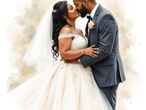 Free clipart illustration of black bride and groom kissing at their wedding (11)