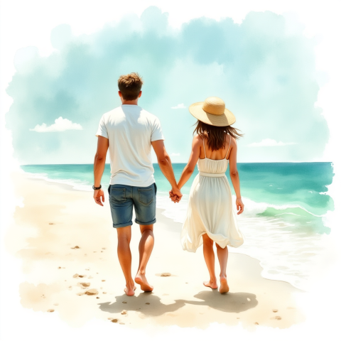 free clipart illustration of couple walking together on beach (1)