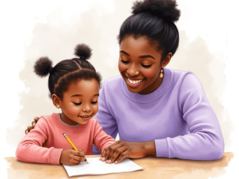 free clipart illustration of a black parent helping child with school work (2)