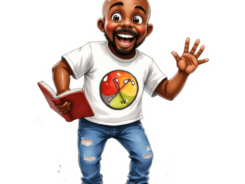 free clipart illustration of excited black teacher holding a textbook