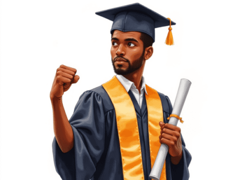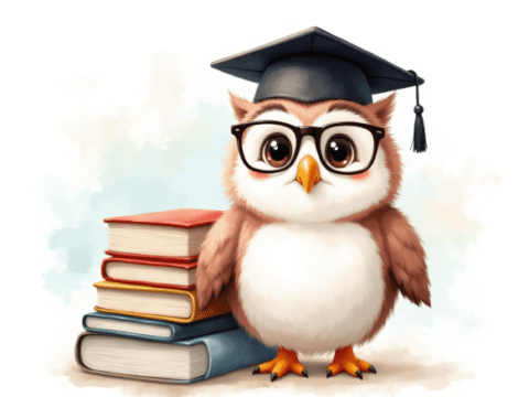 free clipart of a student sitting on a pile of giant textbooks and holding a blank sign