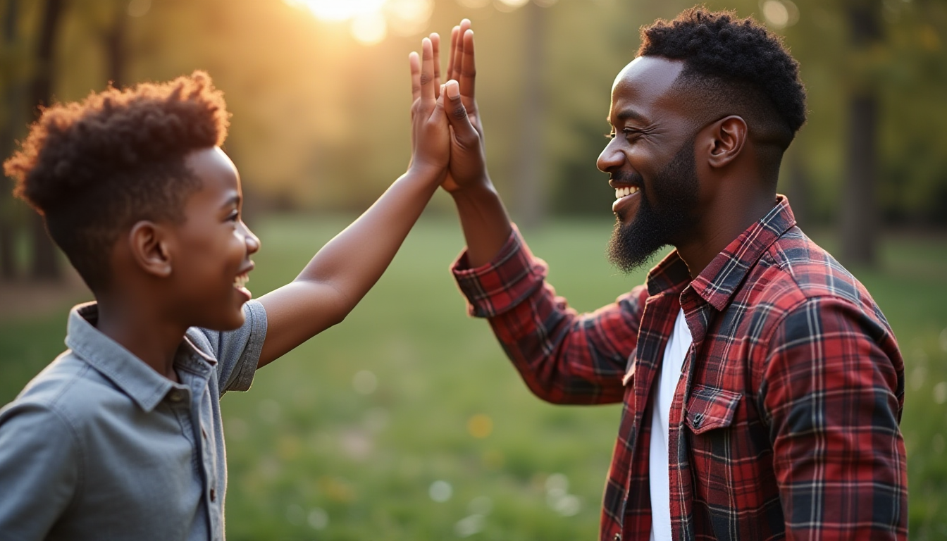Home ยป father son high five sunset parktime