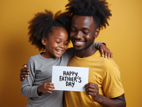 Free stock photo black father getting fathers day card from daughter (6)