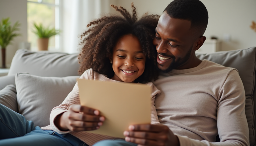 ← free stock photo of black father getting fathers day card from daughter (3)