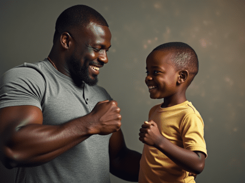 father daughter playtime sunset field