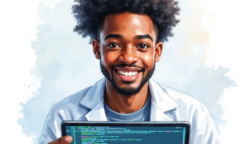 free clipart illustration of a black man working with computer (3)