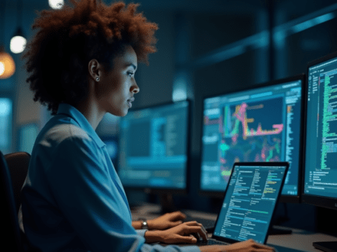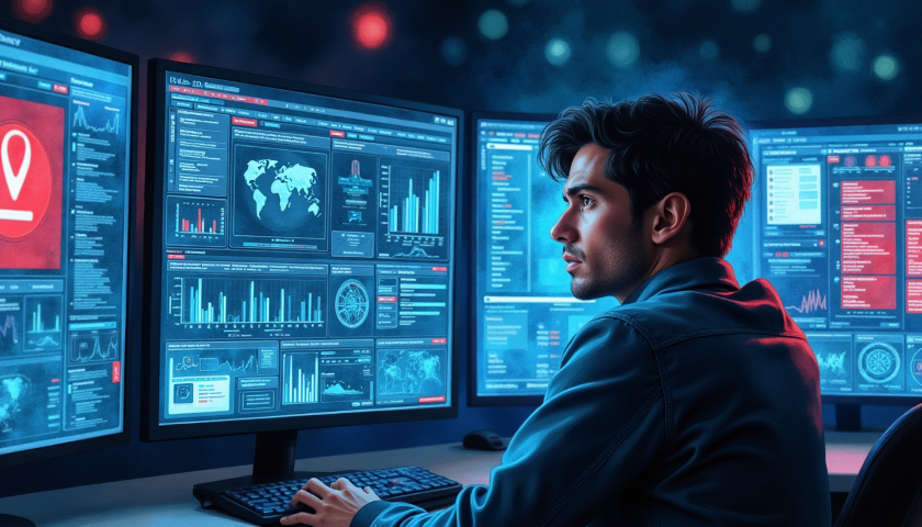 free clipart illustration of a male computer analst at work (3)