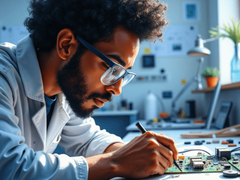 free clipart illustration of a black man working with computer (2)