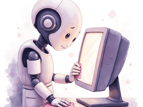 free clipart illustration of a smiling computer holding a wrench (4)