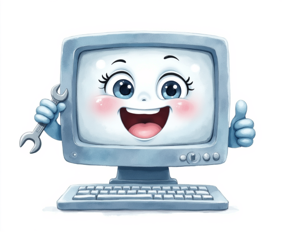 free clipart illustration of a smiling computer holding a wrench (1)