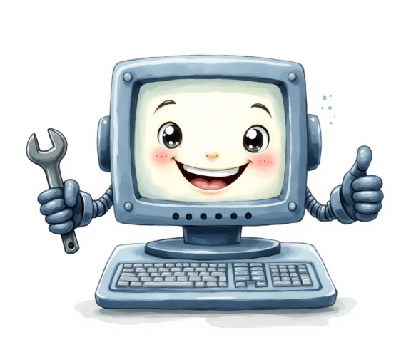 free clipart illustration of a smiling computer holding a wrench (8)