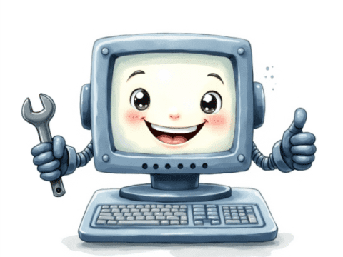free clipart illustration of a smiling computer holding a wrench (8)