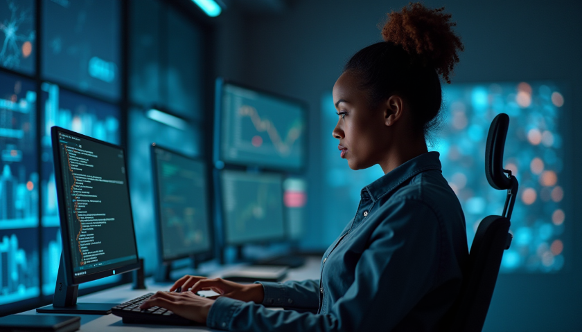 free stock photo of black female computer analyst (5)