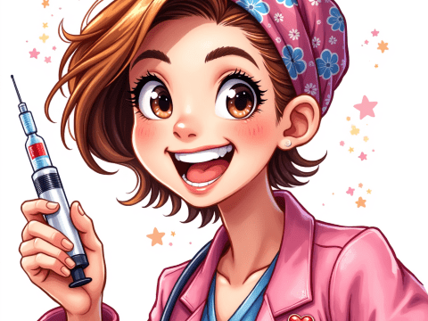 nurse with syringe smiling illustration