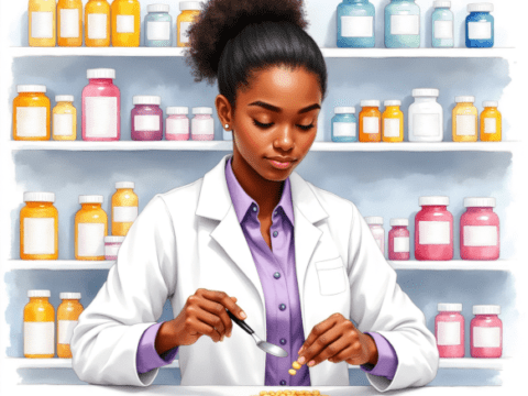 pharmacist organizing tablets