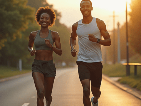 free clipart illustration of a black couple exercise running outdoors (4)