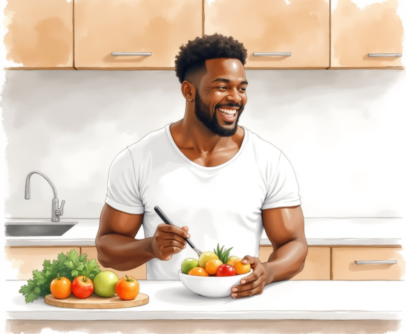 free clipart illustration of a fit black male haiving a fruit bowl meal (10)