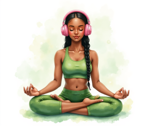 free clipart illustration of a healthy black female sitting in a yoga pose meditation (3)