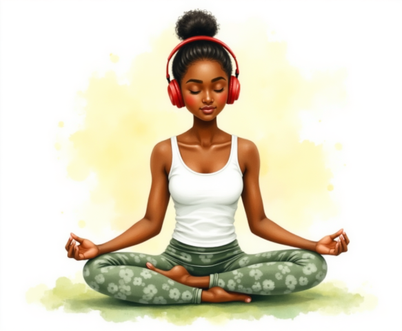free clipart illustration of a healthy black female sitting in a yoga pose meditation (7)