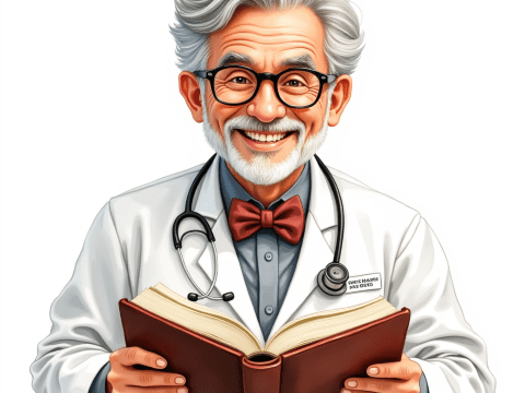 happy doctor with book