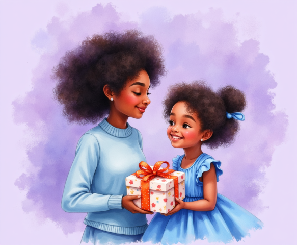 Free clipart illustration of a African American mother getting gift from her daughter (6)