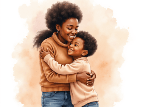 Free clipart illustration of African boy giving mothers day gift to mom (10)