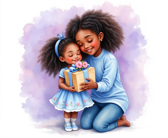 Free clipart illustration of a African American mother getting gift from her daughter (7)