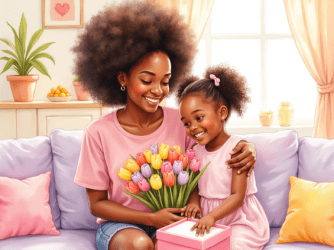 Free clipart illustration of a African American mother getting gift from her daughter (9)