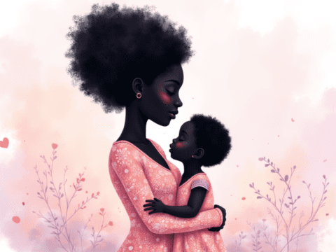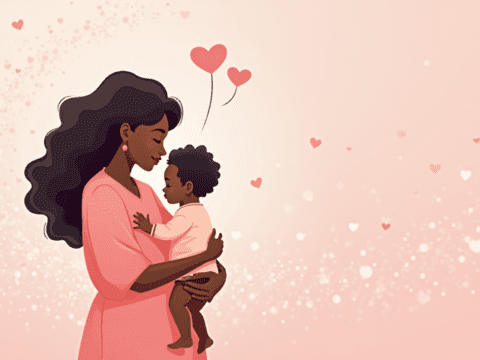 Free clipart illustration of African American mother holding child (1)