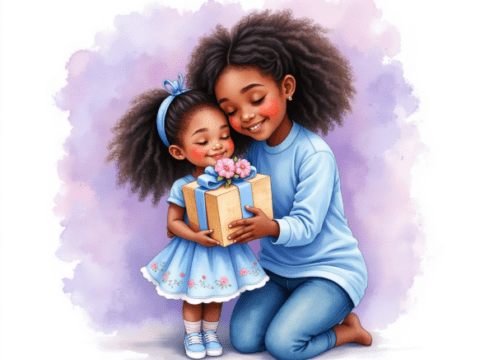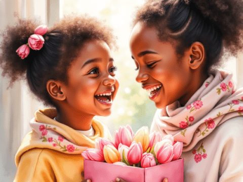 Free clipart illustration of a African American mother getting gift from her daughter (7)