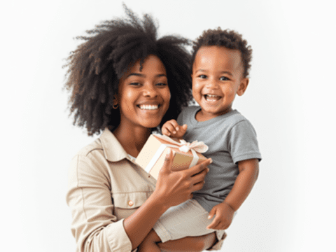 Free clipart illustration of black mother and son holding mothers day gift box (3)