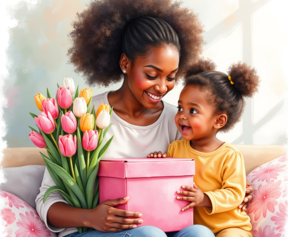 Home ยป Free clipart illustration of a black Jamaican mother getting mothers day gift from daughter (4)