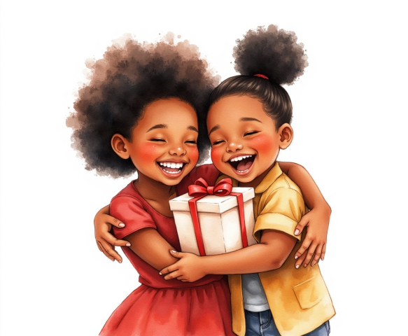 Free clipart illustration of African boy giving mothers day gift to mom (8)