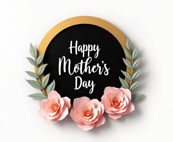 free clipart illustration of black and gold mothers day circle design with flowers (1)
