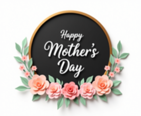 free clipart illustration of black and gold mothers day circle design with flowers (3)