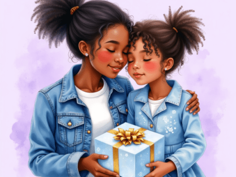 Free clipart illustration of a African American mother getting gift from her daughter (9)
