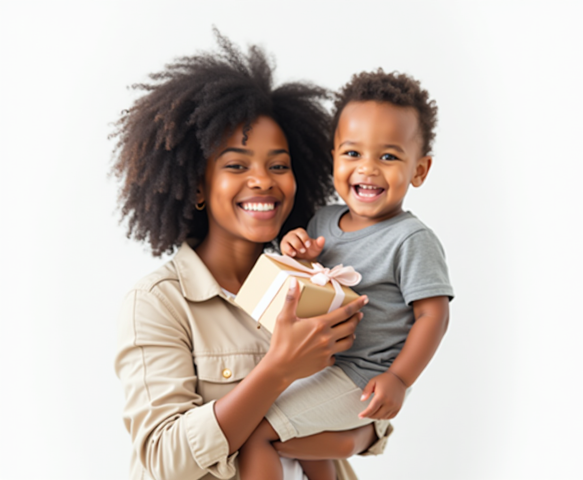 Free clipart illustration of black mother and son holding mothers day gift box (2) →