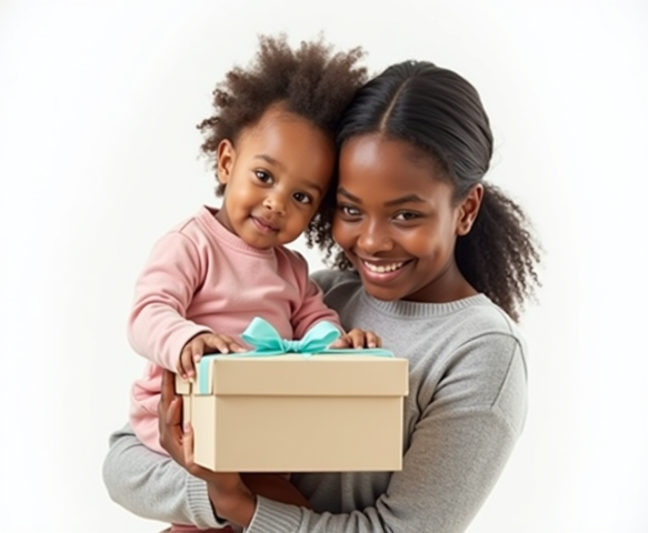 Free clipart illustration of black mother and son holding mothers day gift box (5)