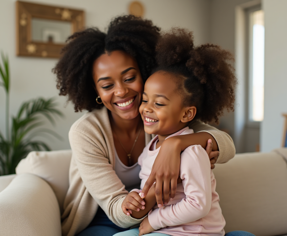 free stock photo of black mother embracing daughter (3)