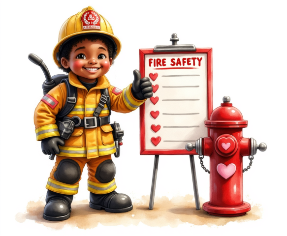 free clipart illustration of a black fireman with fire safety checklist (8)