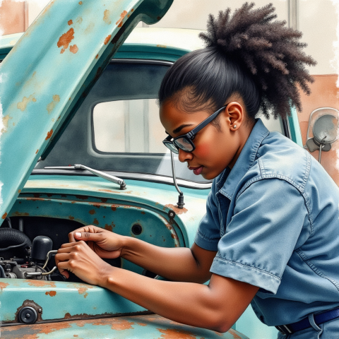 free clipart illustration of a mechanic using tools to fix car (2)