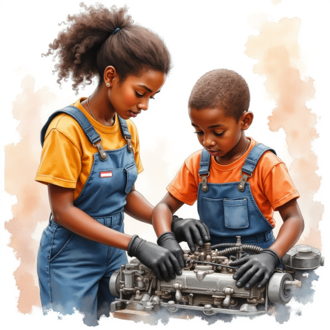 free clipart illustration of a mechanic using tools to fix car (5)