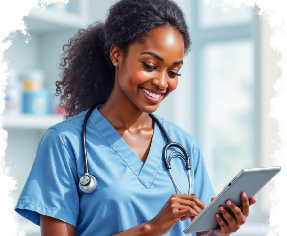 free clipart illustration of a nurse looking at medical report on her tablet (9)
