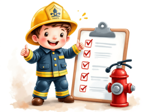 free clipart illustration of a friendly fireman with fire safety checklist (4)
