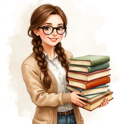 free clipart illustration of a teacher carrying books